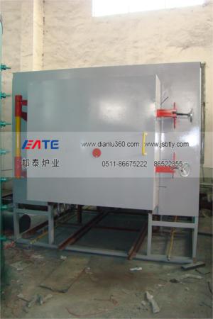 模殼焙燒爐為燃氣抽底式臺車火焰爐,采用進口工業爐設備特點,經我廠根據我國國情和使用情況,在性能和技術上作進一步改進研發成功的,現已被幾十家用戶成功使用了多年,實踐證明此產品技術非常成熟,根據用戶使用信息反饋顯示,它與原常規爐型相比顯示出能耗顯著降低、溫度均勻、環境凈化、維修方便等優點。 該爐利用火焰向上噴發熱量,遇圓弧頂后向下中間煙道旋轉排放設計,有效控制爐溫均勻性和熱能的利用率。 本爐主要由爐體(包括爐襯)爐門、爐車、燃燒系統、排煙系統、密封、溫度控制及記錄等主要部件組成。 液化氣燃燒臺車爐是先進節能型周期式作業爐,超節能結構,臺車采用防撞擊密封磚,爐門采用手輪和彈簧式自動壓緊機構,自動密封臺車和爐門,一體化連軌,不需基礎安裝,放在水平地面即可使用。主要用于型殼焙燒、高鉻、高錳鋼鑄件、球墨鑄鐵、軋輥、鋼球、45鋼、不銹鋼等淬火、退火、時效以及各種機械零件熱處理之用。