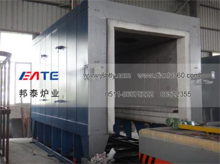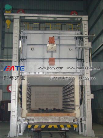 全纖維臺車爐由爐體(包括爐襯)、爐門、爐車、爐門起吊機構、爐車行走機構、加熱元件、溫控系統、溫度記錄等部分組成。